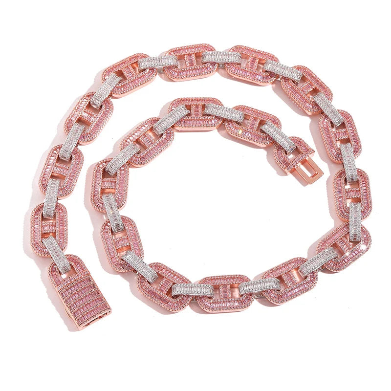 King’s Link – Chaîne Rectangle Iced Or / Argent / Rose | Bijou Luxe Homme/Femme – Île de La Réunion