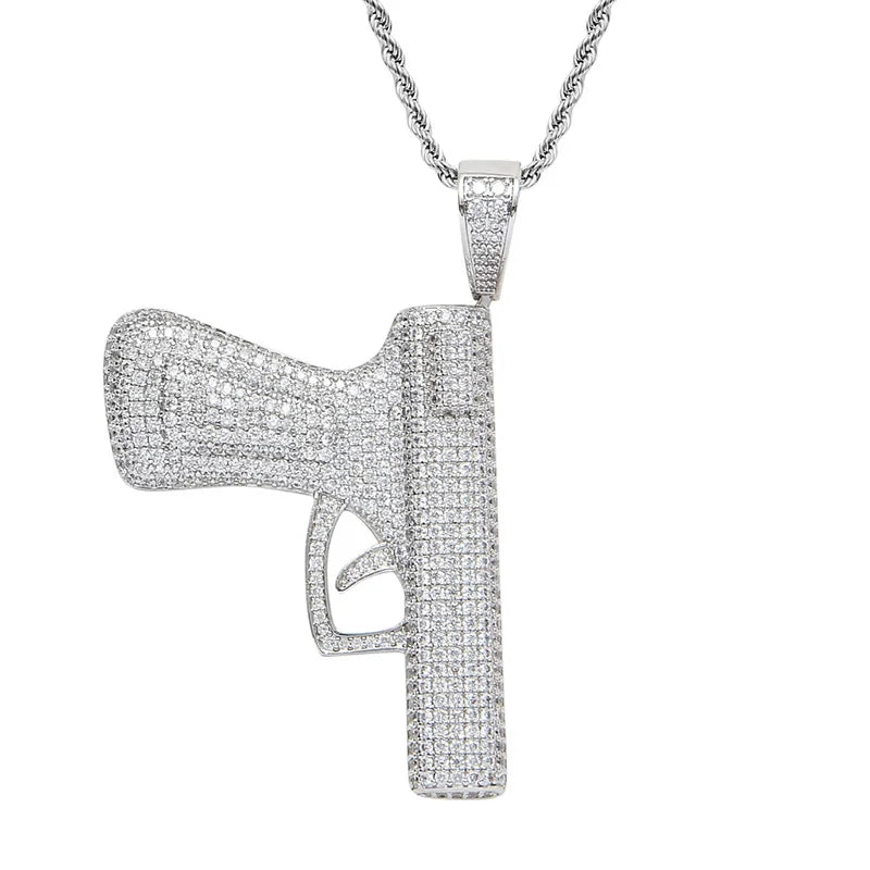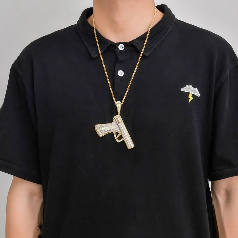 Le Pendentif Gun Iced est un bijou décoratif pensé pour ceux qui aiment les pièces fortes, brillantes et originales. Entièrement pavé de zircons 5A+, il reflète la lumière sous tous les angles pour un rendu ultra-glacé, digne des bijoux haut de gamme les plus tendance du moment.