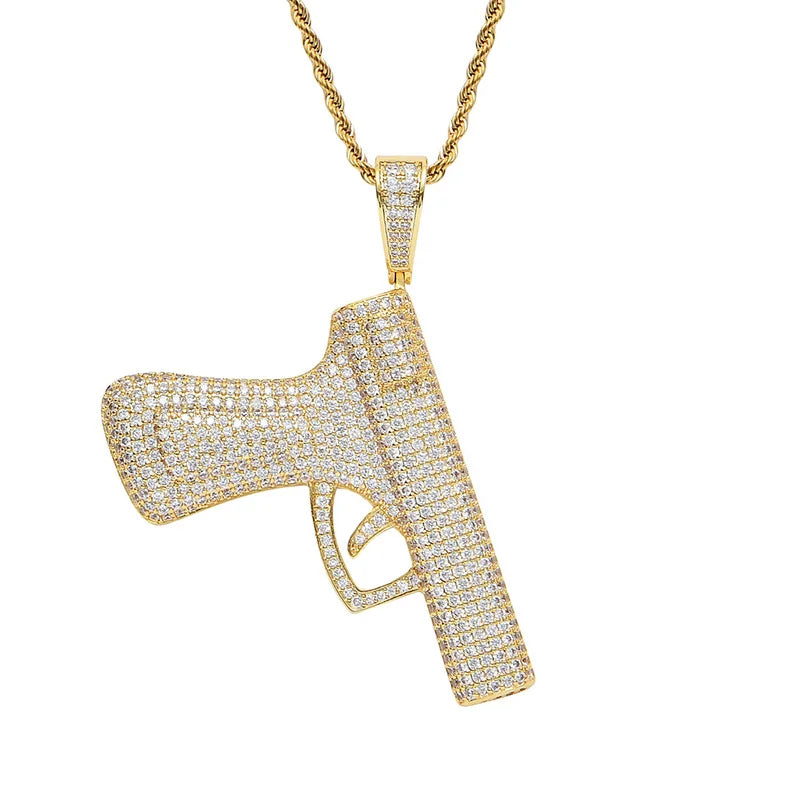 Pendentif Gun Iced – Zircon 5A+ & Plaqué Or | Chaîne Incluse – Style Luxe 974